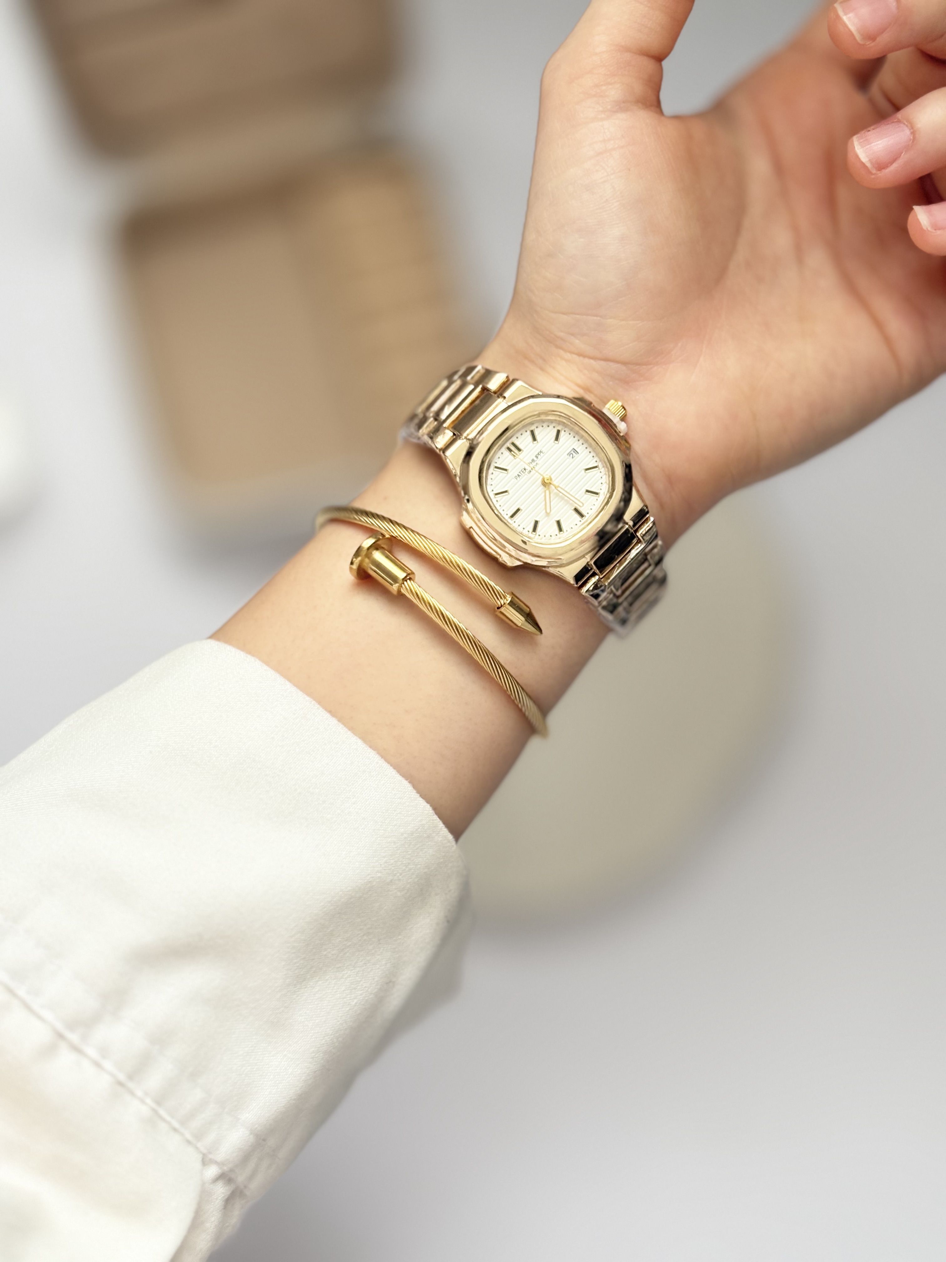 ساعت پتک زنانه طلایی صفحه سفید ابکاری قوی