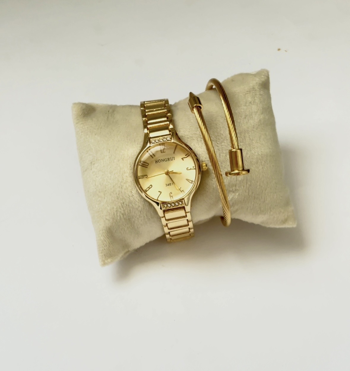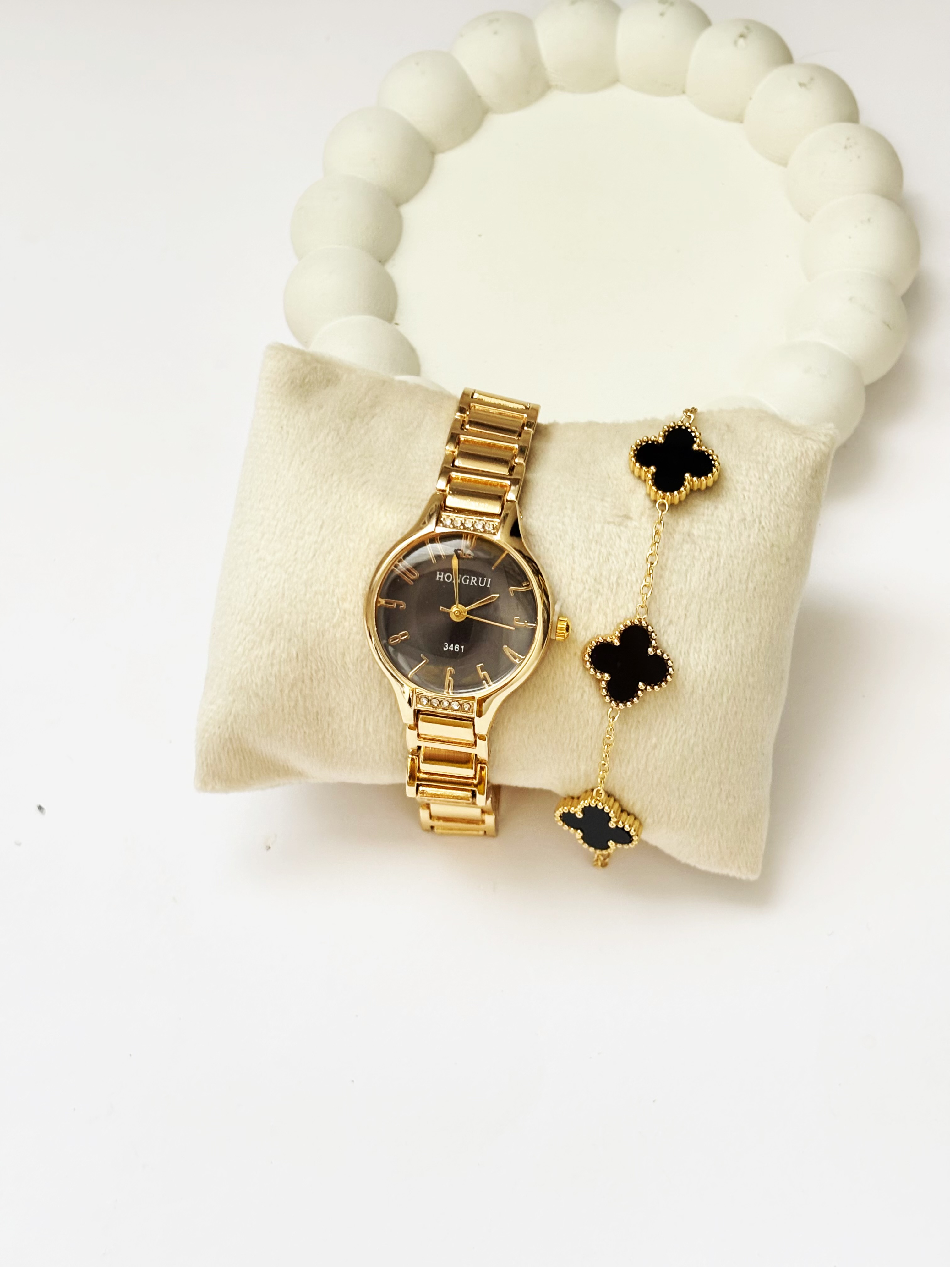 ساعت هانگری صفحه طلایی همراه با دستبند