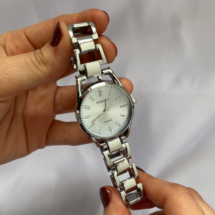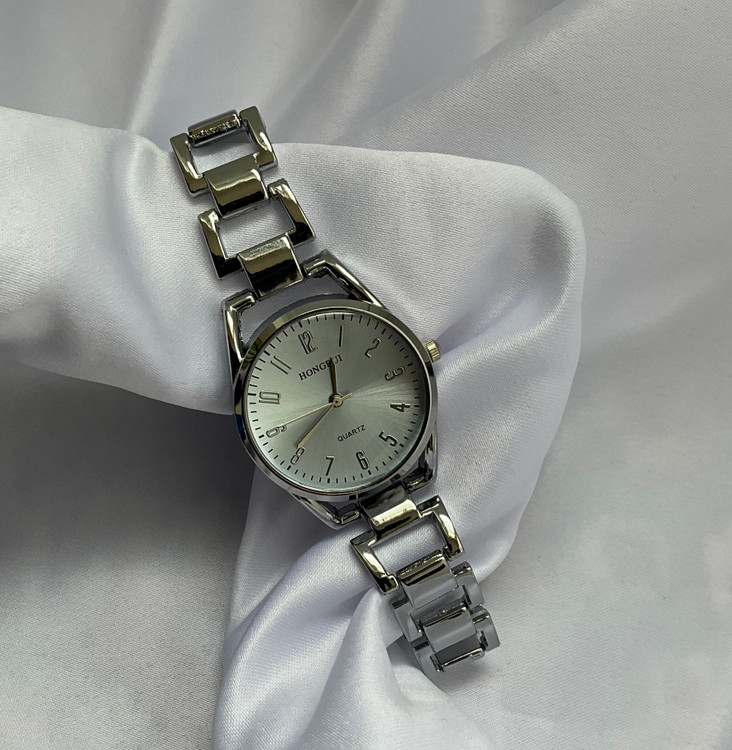 ساعت مچی زنانه بند دستبندی استیل برند هانگری-صفحه آبی یخی بند رنگ ثابت